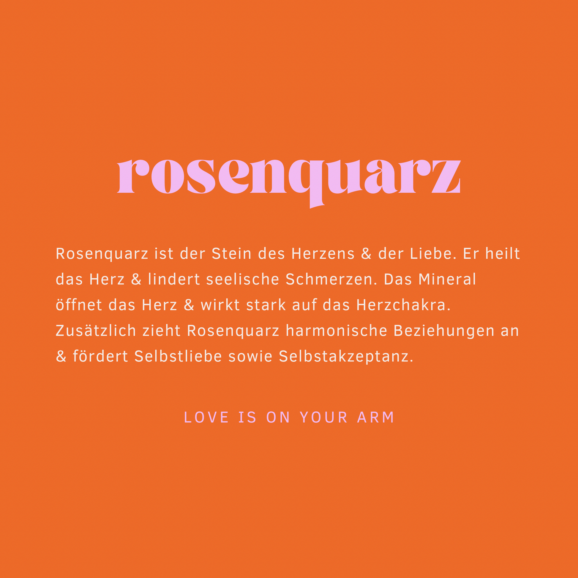 Rosenquarz ist der Stein des Herzens und der Liebe. Er heilt das Herz und lindert seelische Schmerzen. Das Mineral wirkt stark auf das Herzchakra und öffnet das Herz, um Liebe zu empfangen und zu geben. Rosenquarz zieht harmonische Liebes- und Freundschaftsbeziehungen an und fördert Selbstliebe und Selbstakzeptanz.